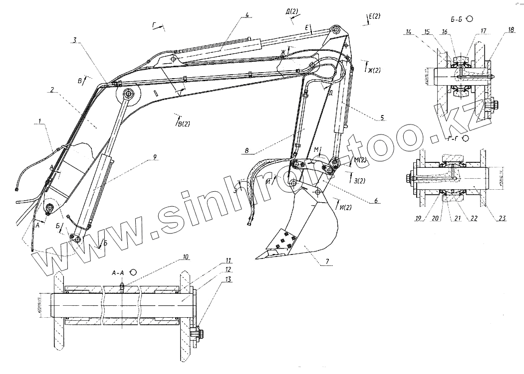 Каталог запасных частей к технике: ТВЭКС ЕТ-16. Рабочее оборудование обратной лопаты