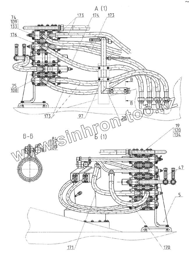 Гидроуправление на поворотной платформе (монтажная схема) (с гидравликой "Bosch-Rexroth")