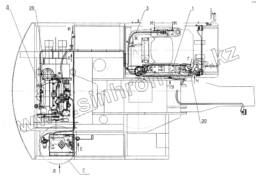 Гидроуправление на поворотной платформе (монтажная схема) (с гидравликой ПСМ)