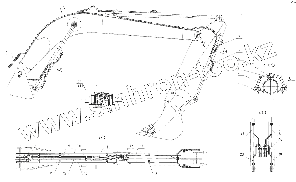 Каталог запасных частей к технике: ТВЭКС ЕТ-18-20. Трубопроводы рабочего оборудования
