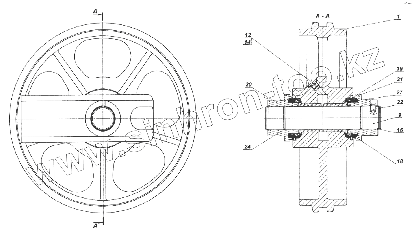 Каталог запасных частей к технике: ТВЭКС ЕТ-20-20. 201.01.04.100 Колесо в ползунах
