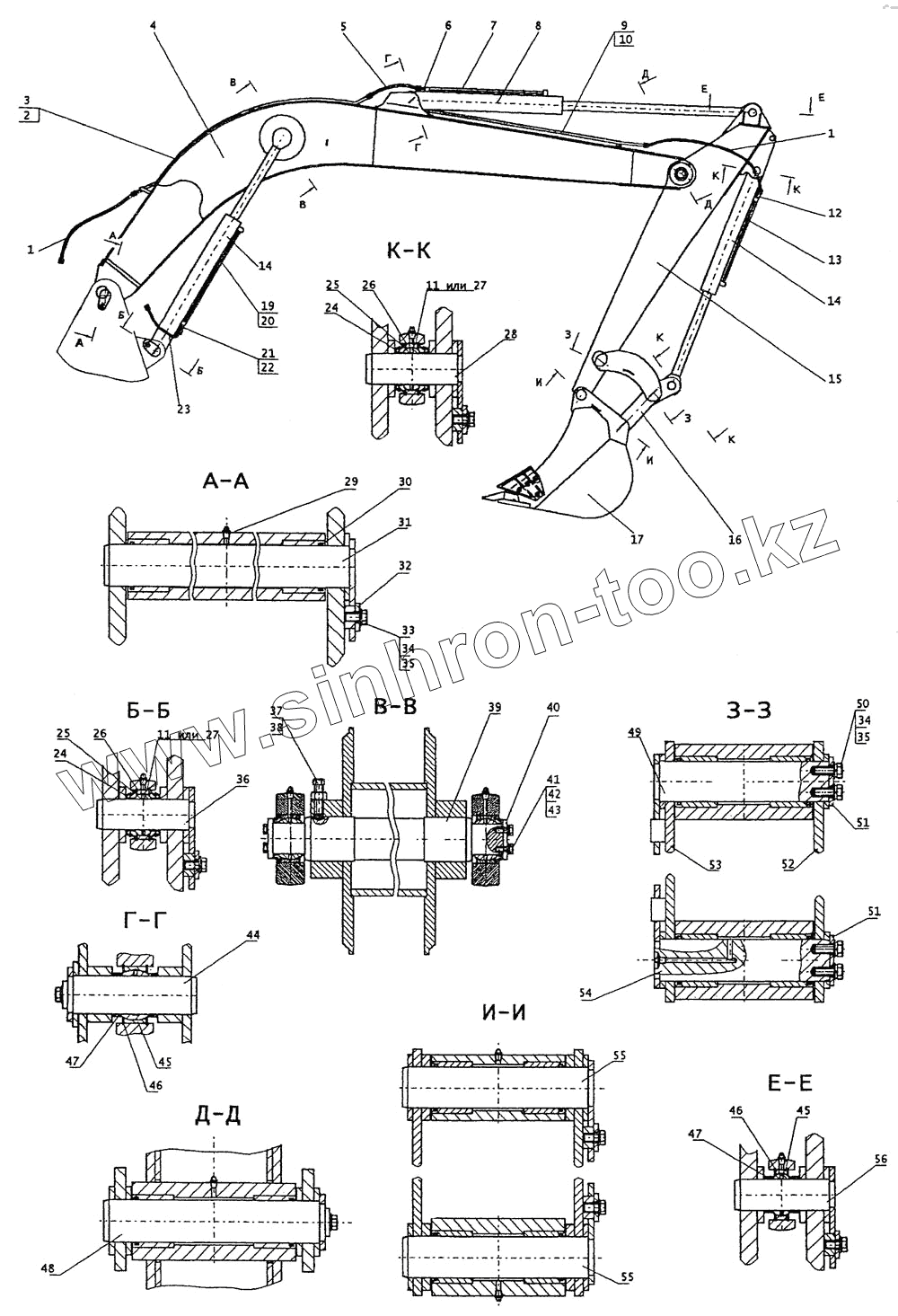 Каталог запасных частей к технике: ТВЭКС ЕТ-25. Рабочее оборудование обратной лопаты