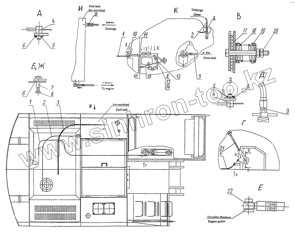 Каталог запасных частей к технике: ТВЭКС ЕТ-25. Топливопроводы и управление подачей топлива