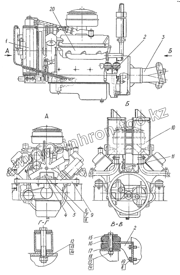 Трубопроводы на поворотной платформе с двигателем Д-260.1