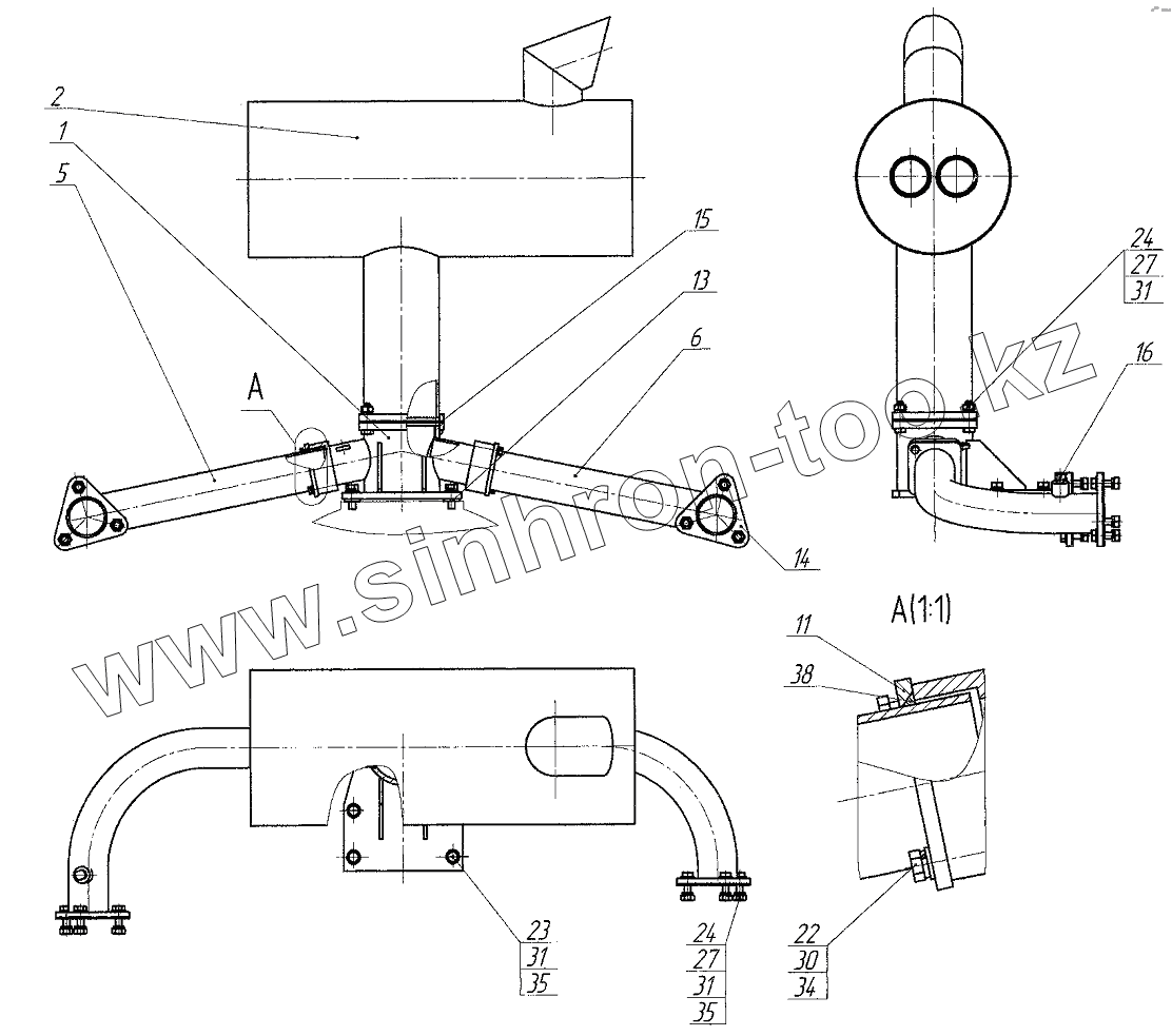 Каталог запасных частей к технике: ТВЭКС ЕТ-26i. 262.42.05.000 Установка глушителя