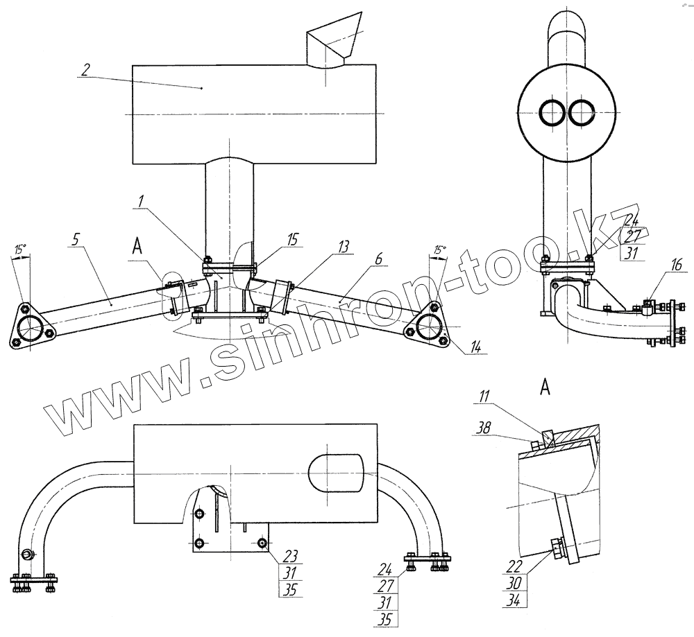 Каталог запасных частей к технике: ТВЭКС ЕТ-26i. 002624205000 00 Установка глушителя