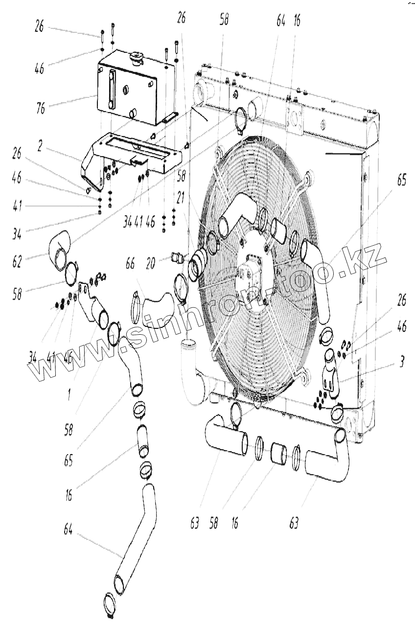 Каталог запасных частей к технике: ТВЭКС ТХ-210. Патрубки водяного радиатора и расширительный бачок