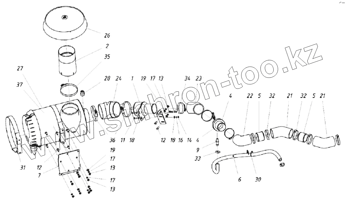 Каталог запасных частей к технике: ТВЭКС ТХ-210. 202120003000 00 Установка воздухоочистителя