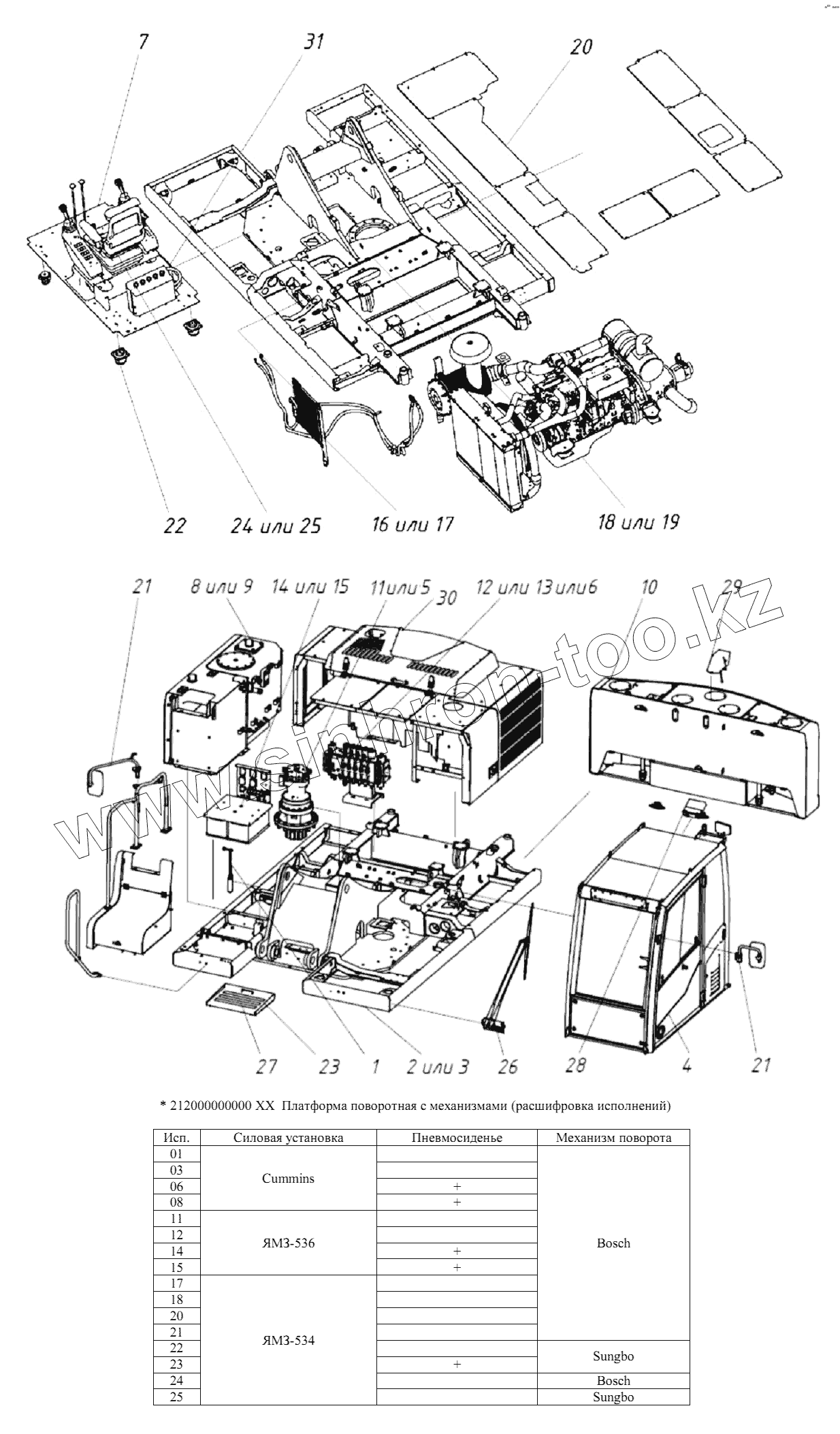 Каталог запасных частей к технике: ТВЭКС ТХ-210. 212000000000 ХХ Платформа поворотная с механизмами