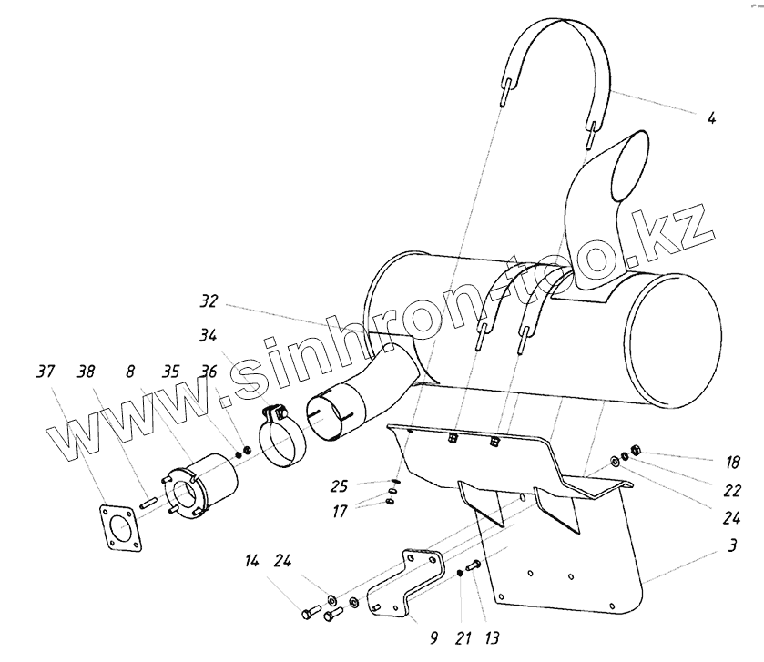 Каталог запасных частей к технике: ТВЭКС ТХ-210. 212120004000 00 Установка глушителя