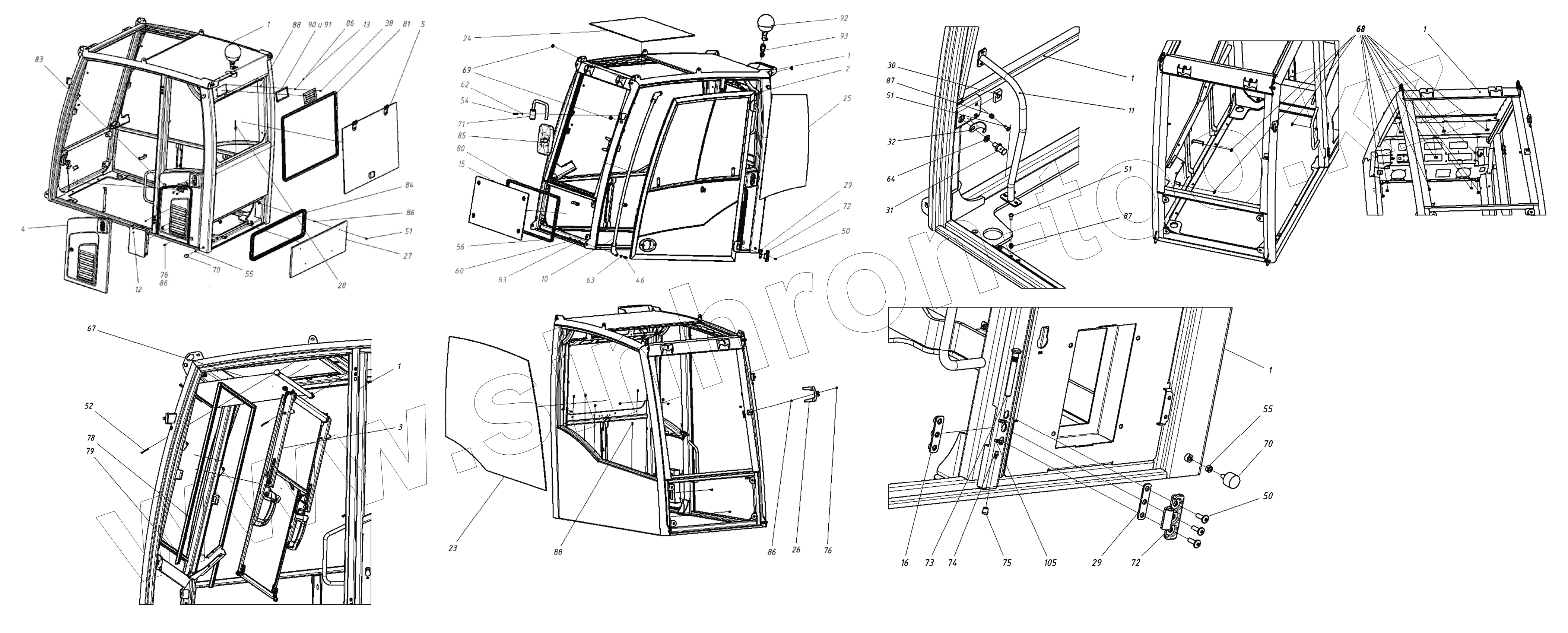 Каталог запасных частей к технике: ТВЭКС ТХ-220. 202020100000 00 Кабина в сборе
