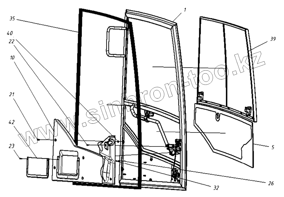 Каталог запасных частей к технике: ТВЭКС ТХ-220. 202020120000 00 Дверь в сборе