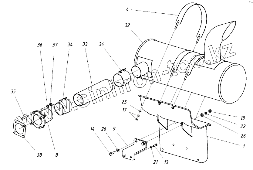 Каталог запасных частей к технике: ТВЭКС ТХ-220. 202121004000 00 Установка глушителя