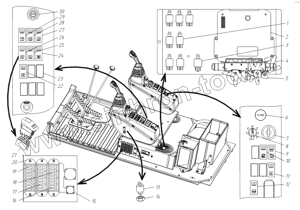 Каталог запасных частей к технике: ТВЭКС ТХ-220. Электроуправление в кабине