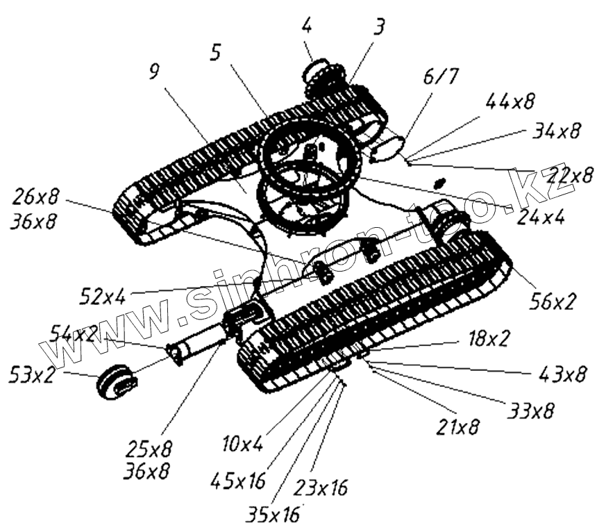 Каталог запасных частей к технике: ТВЭКС ТХ-270 / 300. 271000000000 ХХ, 301000000000 ХХ Тележка ходовая