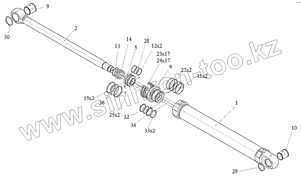 Каталог запасных частей к технике: ТВЭКС ТХ-270 / 300. 273020100000 00, 303020100000 00 Гидроцилиндр стрелы