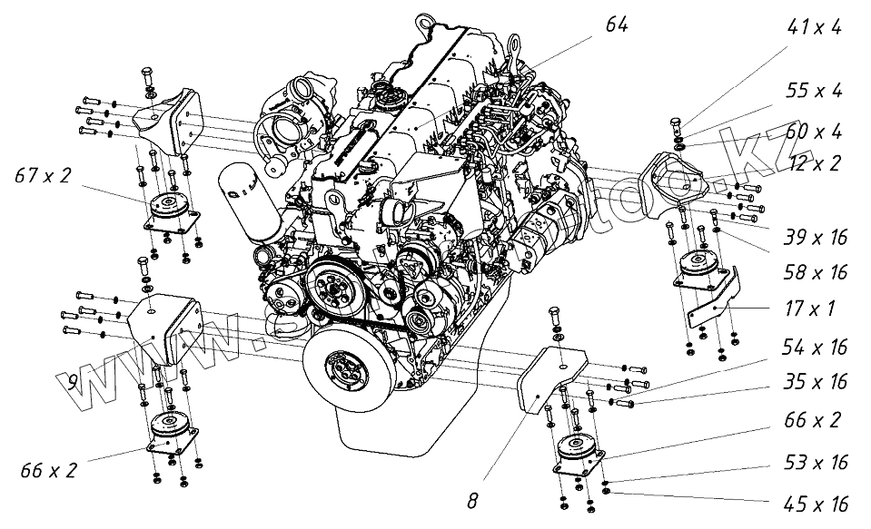 Каталог запасных частей к технике: ТВЭКС ТХ-270 / 300. Двигатель с опорами
