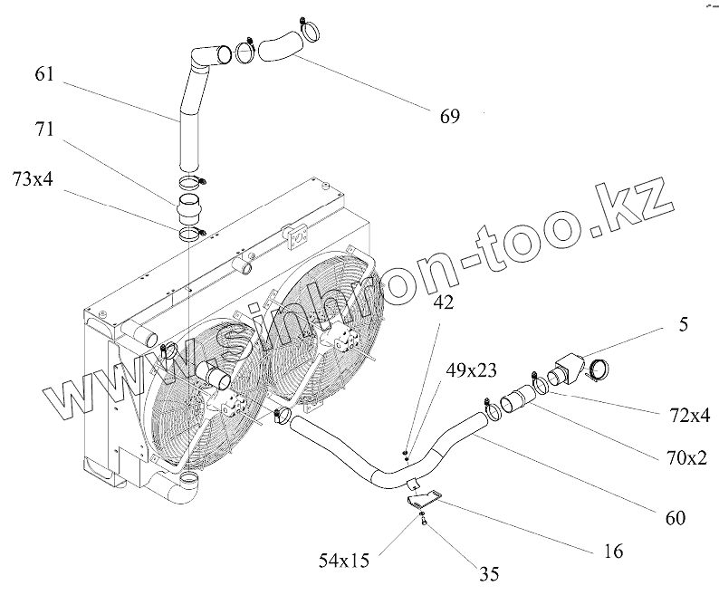 Каталог запасных частей к технике: ТВЭКС ТХ-270 / 300. Патрубки интеркулера