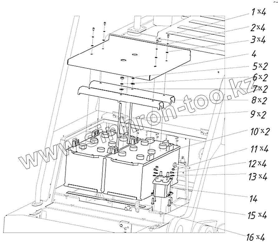 Каталог запасных частей к технике: ТВЭКС ТХ-270 / 300. Установка АКБ