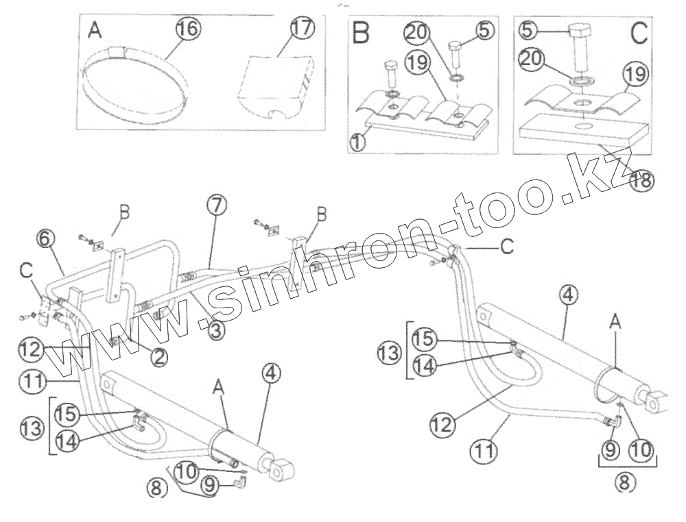 Каталог запасных частей к технике: ТВЭКС TLB 825. Цилиндр подъема