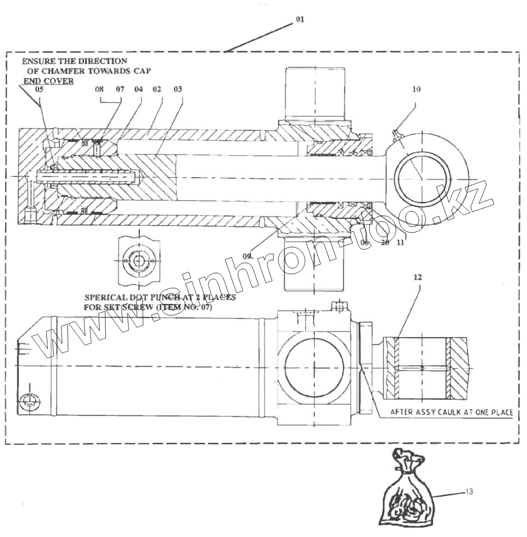 Каталог запасных частей к технике: ТВЭКС TLB 825. Цилиндр поворотной осиэкскаватора/55 o