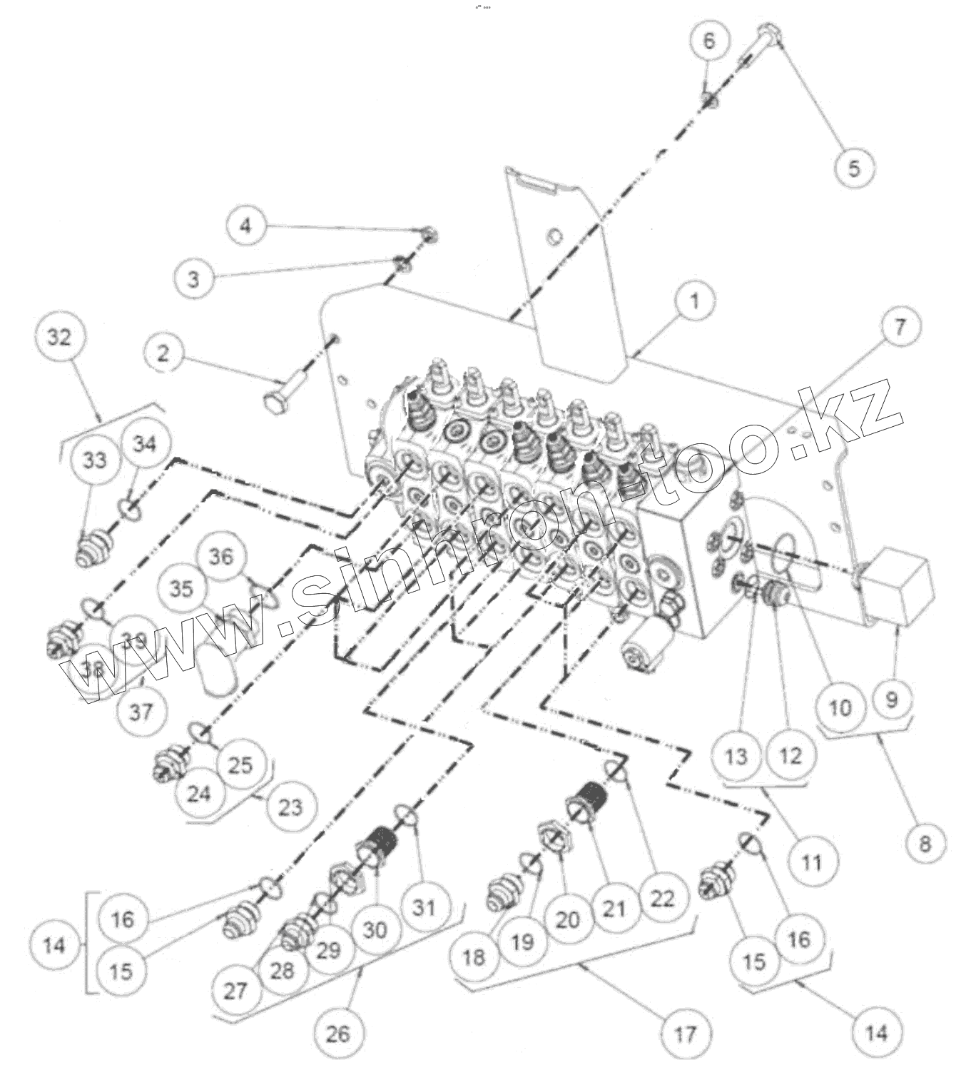 Каталог запасных частей к технике: ТВЭКС TLB 825. ГИДРОРАСПРЕДЕЛИТЕЛЬ 7-ТИ ЗОЛОТНИКОВЫЙ