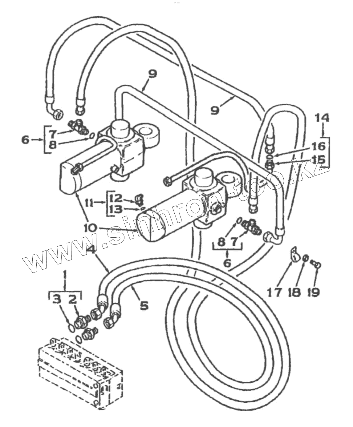 ЦИЛИНДР ПОВОРОТА/55 D. ПОВОРОТНАЯ ОСЬ ЭКСКАВАТОРА