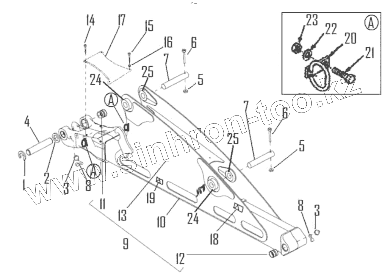 ЦИЛИНДР ПОВОРОТА/55 D. ПОВОРОТНАЯ ОСЬ ЭКСКАВАТОРА