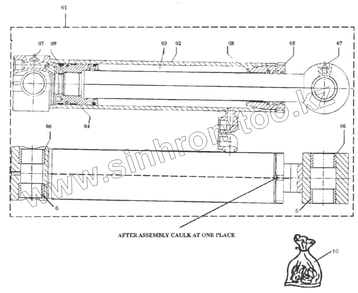 Каталог запасных частей к технике: ТВЭКС TLB 825. ЦИЛИНДР КОВША ГИДРАВЛИКА ЭКСКАВАТОРА