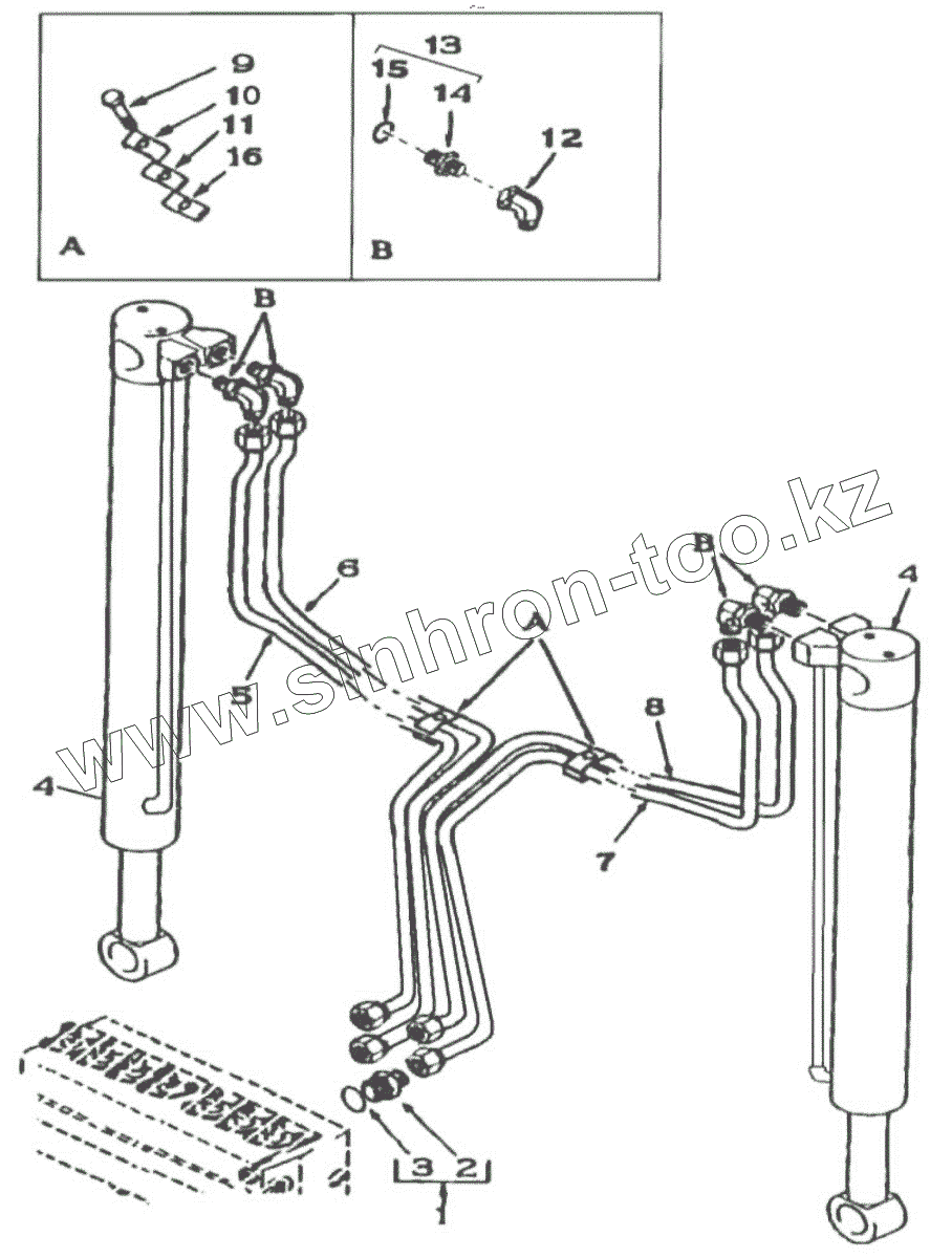 Гидрооборудование экскаваторное, привод стрелы
