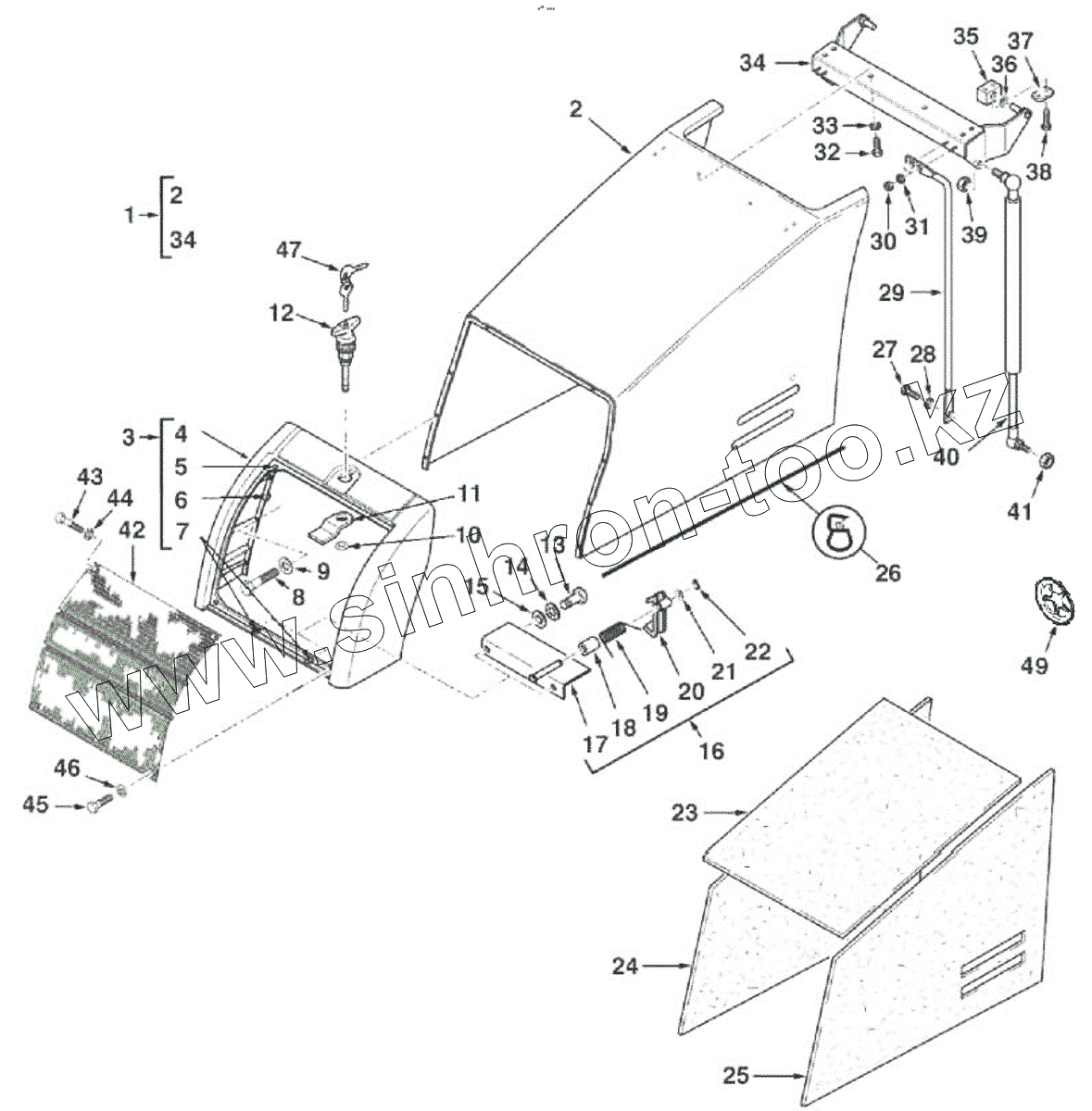 Каталог запасных частей к технике: ТВЭКС TLB 935. Капот двигателя / белый