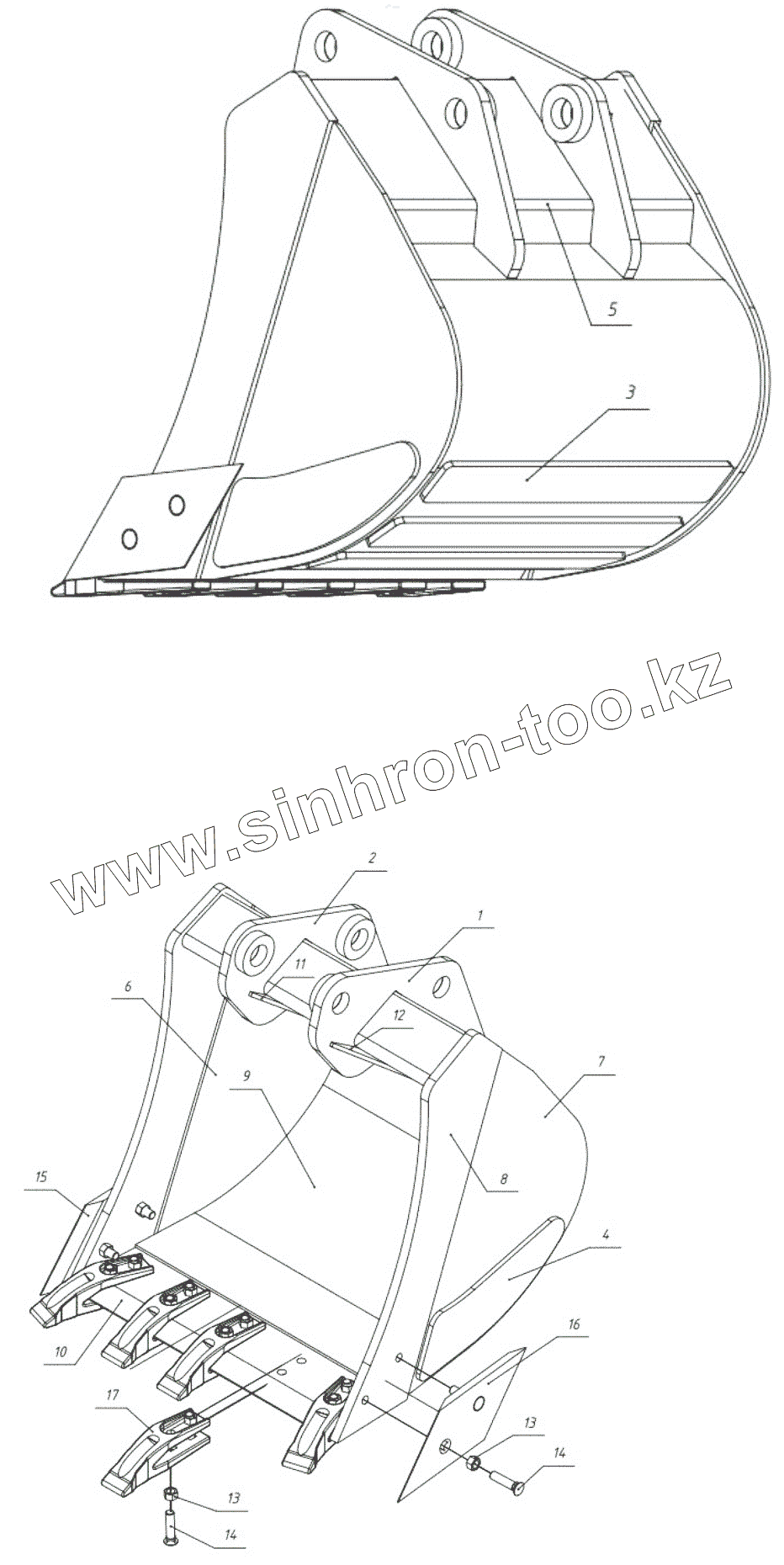 Каталог запасных частей к технике: ТВЭКС TLB 935. Экскаваторный ковш