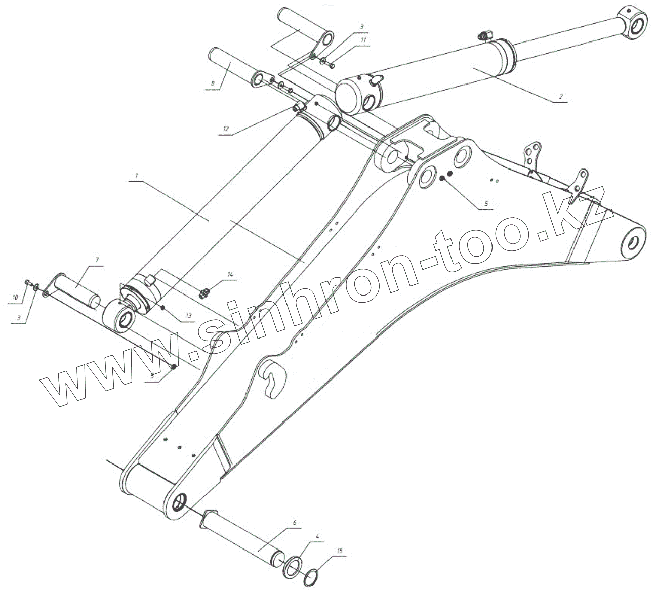 Гидрооборудование экскаваторное, телескопическое, привод ковша