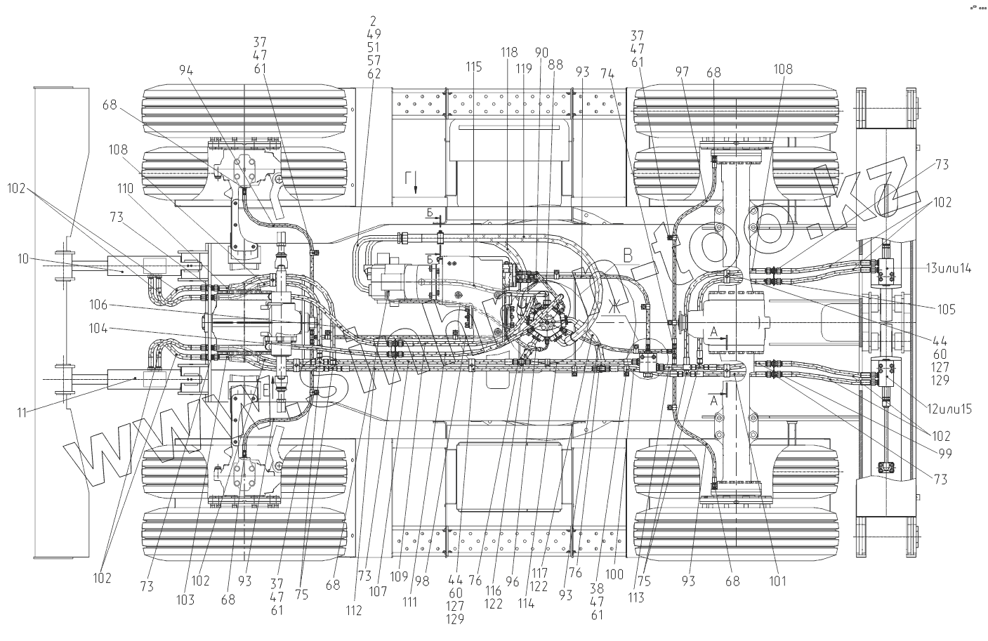 Каталог запасных частей к технике: ТВЭКС TVEX-140W. 001410105000 00 Гидрооборудование тележки