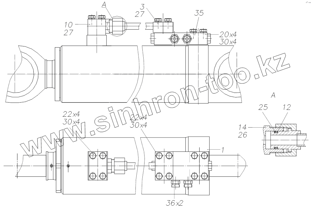 Каталог запасных частей к технике: ТВЭКС TVEX-140W. 002210105600 00 Гидроцилиндр выносных опор правый