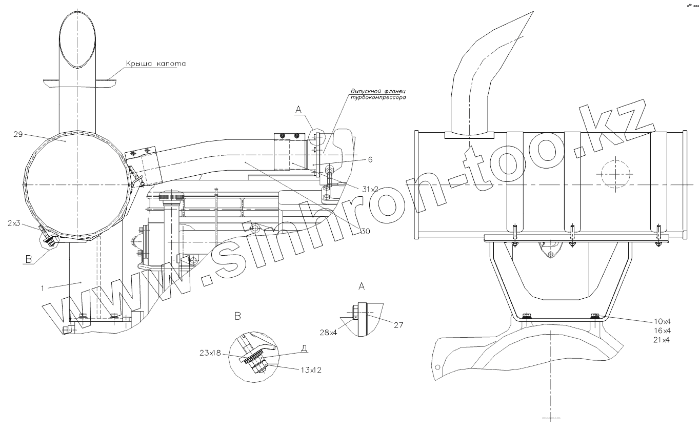 Каталог запасных частей к технике: ТВЭКС TVEX-180W. 314220408000 30 Установка глушителя