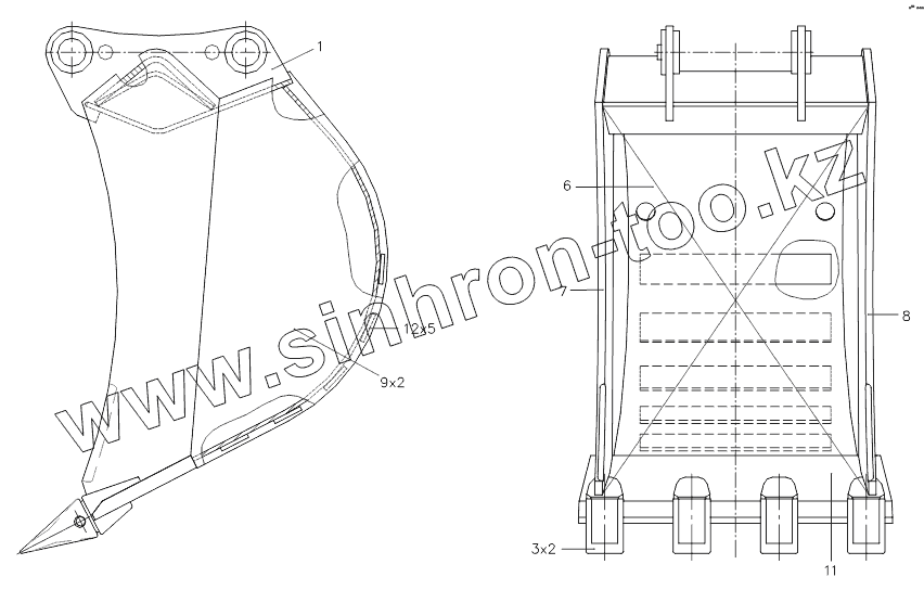Каталог запасных частей к технике: ТВЭКС TVEX-180W. 320002107500 10 Ковш обратной лопаты