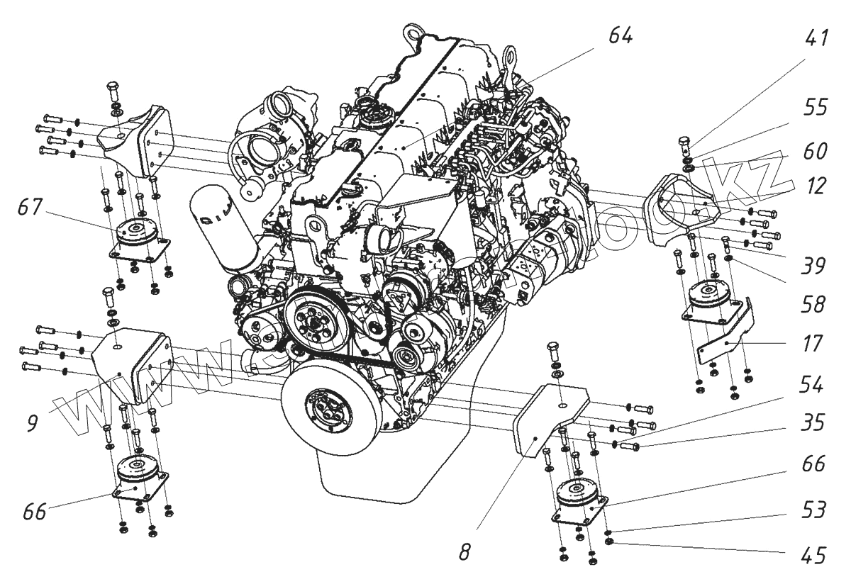Каталог запасных частей к технике: ТВЭКС TX220LC. Двигатель с опорами