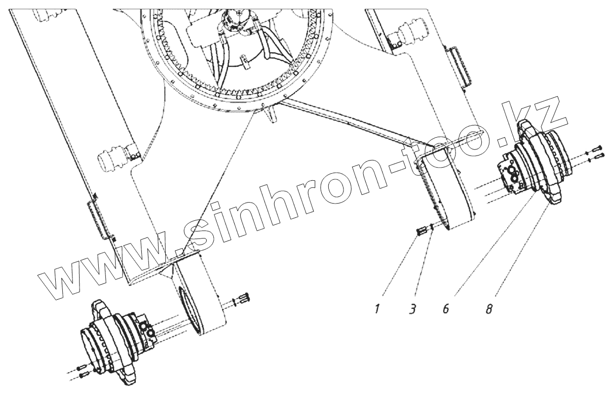 Каталог запасных частей к технике: ТВЭКС TX220LC. Установка приводов хода