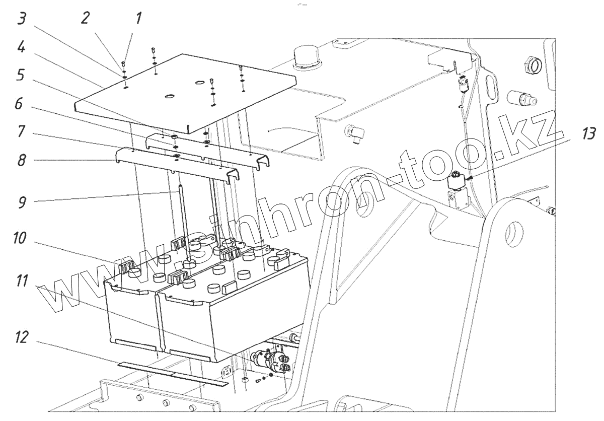 Каталог запасных частей к технике: ТВЭКС TX220NLC. Установка АКБ