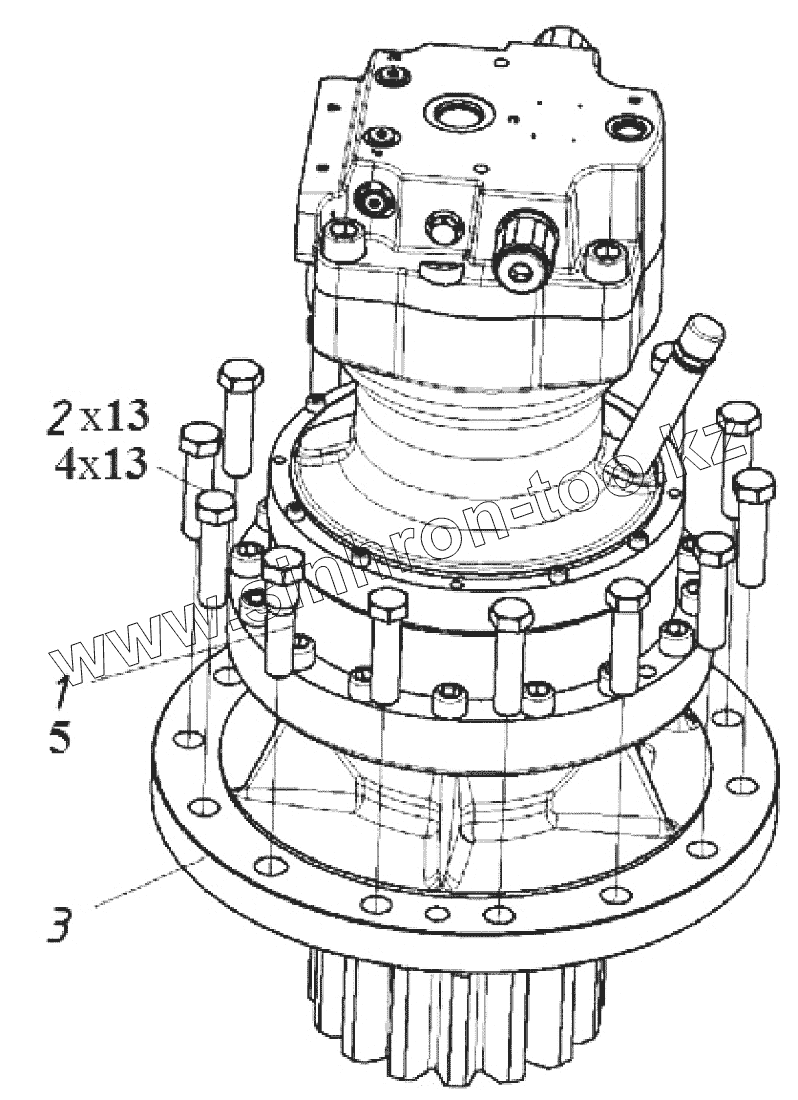 Каталог запасных частей к технике: ТВЭКС TX220NLC. Установка механизма поворота