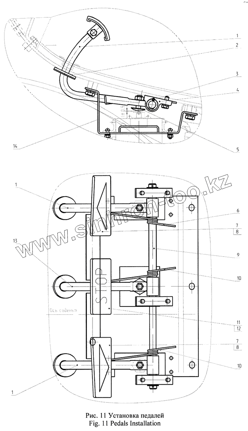 Каталог запасных частей к технике: ТВЭКС ВП-05 (2005). Установка педалей