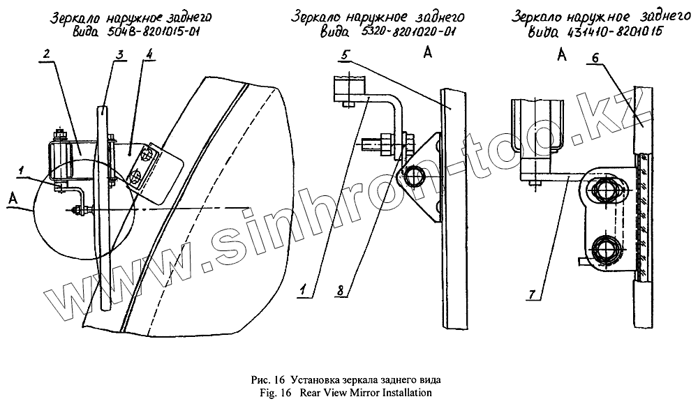 Каталог запасных частей к технике: ТВЭКС ВП-05 (2005). Установка зеркала заднего вида