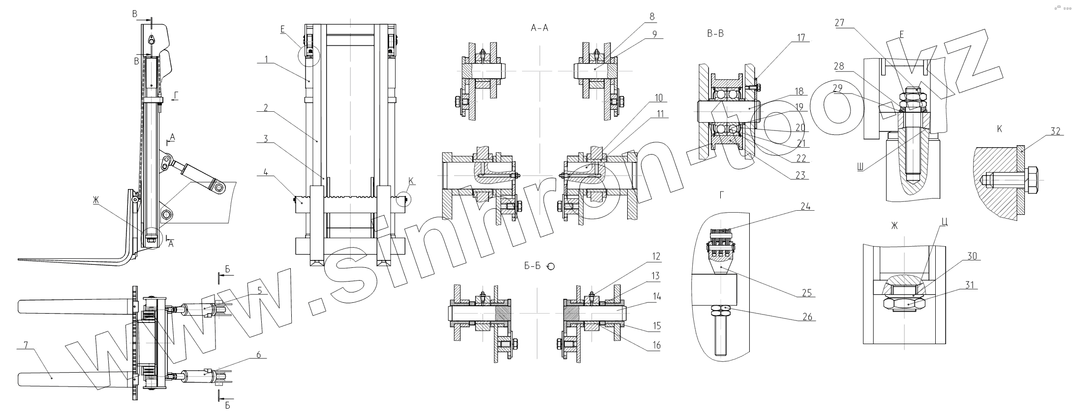 Каталог запасных частей к технике: ТВЭКС ВП-05 (вариант). 005-04-33.00.000 Грузоподъемник