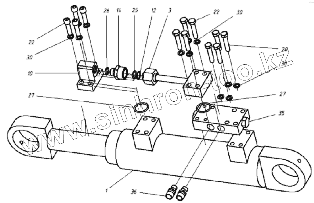 Каталог запасных частей к технике: ТВЭКС WХ-200. 002210105600 00 Гидроцилиндр выносных опор левый