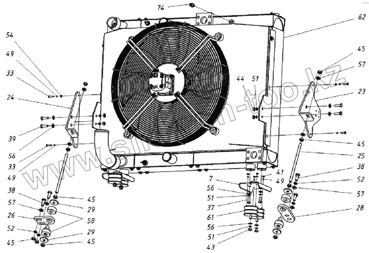 Каталог запасных частей к технике: ТВЭКС WХ-200. 202121002000 00 Радиатор с кронштейнами