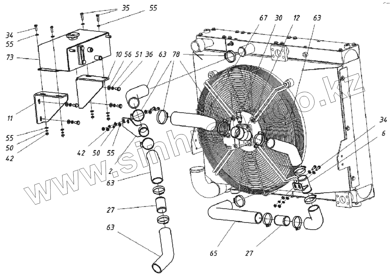 Каталог запасных частей к технике: ТВЭКС WХ-200. Патрубки водяного радиатора и расширительный бачок