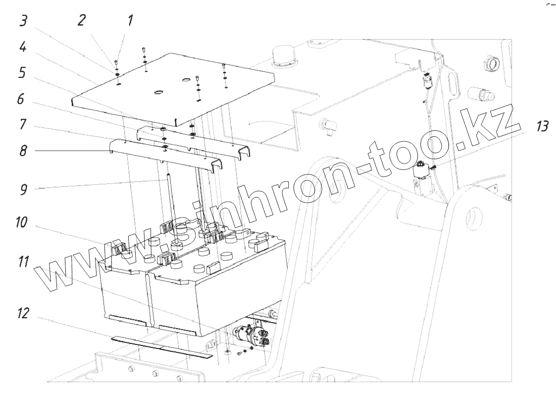 Каталог запасных частей к технике: ТВЭКС WХ-200 (2017). Установка АКБ