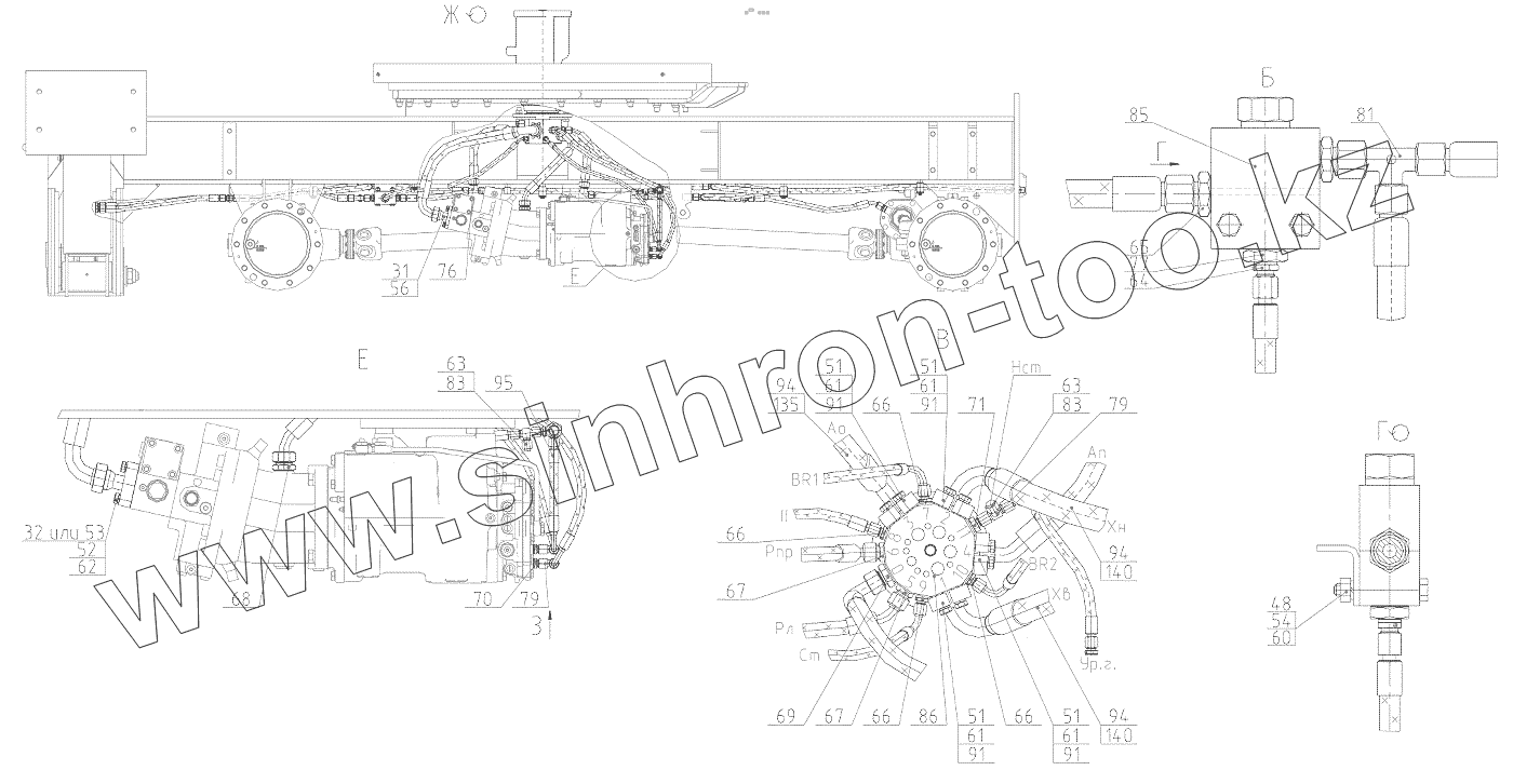 Каталог запасных частей к технике: ТВЭКС WX200. Гидрооборудование ходовой тележки (основной вариант Sungbo)