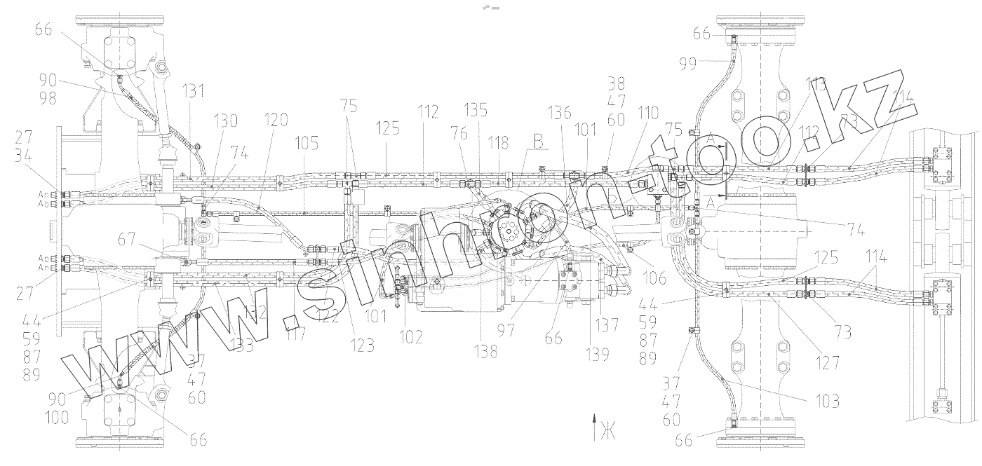 Каталог запасных частей к технике: ТВЭКС WX200. Гидрооборудование ходовой тележки (раздельное управление аутригеров)